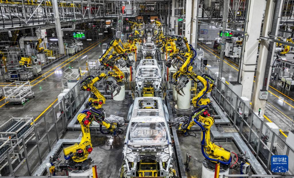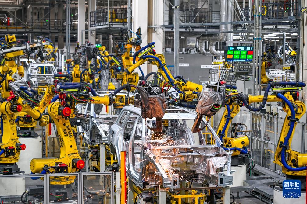 9月19日在位于重庆市两江新区的赛力斯汽车超级工厂拍摄的自动化生产作业现场。