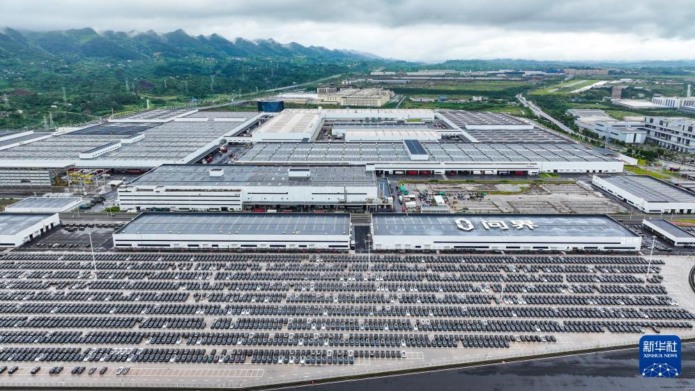 9月19日在位于重庆市两江新区的赛力斯汽车超级工厂拍摄的新能源汽车(无人机照片)。
