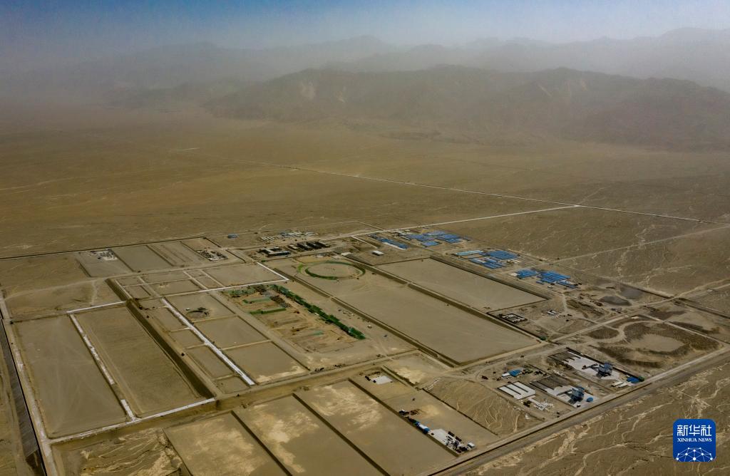 9月22日在新疆巴音郭楞蒙古自治州若羌县拍摄的三峡集团“疆电外送”第四通道电源项目施工现场(无人机照片)。