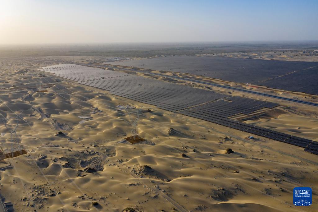 昔日的戈壁荒漠,如今由太阳能光伏板汇聚成“蓝色海洋”,由风力发电机组成“白色森林”,正孕育着无限“风光”。
