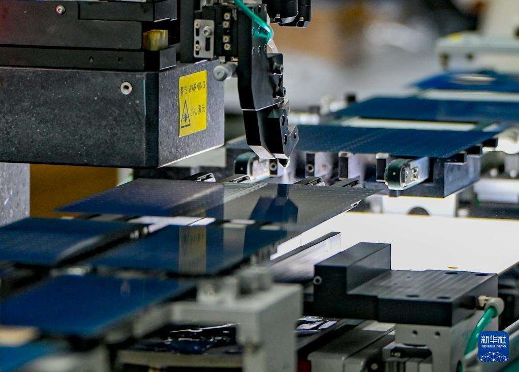 9月22日,工人在新疆巴音郭楞蒙古自治州若羌县的国晟企诚新能源有限公司生产光伏电池片。