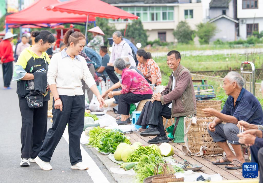 9月29日,游客在选购农产品。