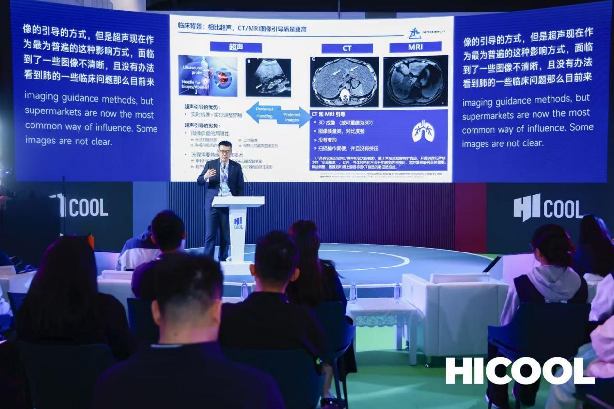 王小奇博士介绍,公司致力于研发CT/MRI实时图像引导下的微创穿刺手术机器人。该系统通过自研机器人机械臂,可在CT或核磁共振扫描环境下实现与患者“同进同出”的同步精准穿刺操作。相较传统术式需要反复扫描确认穿刺位置,该产品支持在实时、动态的影像导航下完成穿刺手术,旨在提升手术的安全性、精准度与效率。
