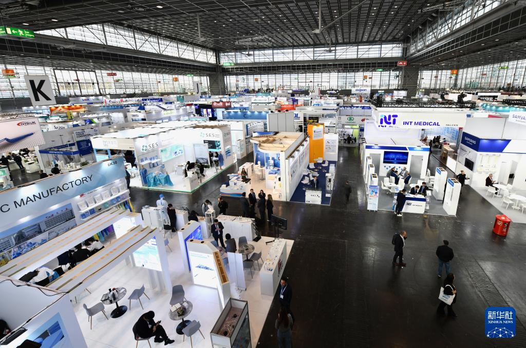 11月17日,人们在德国杜塞尔多夫国际医疗器械设备展的中国展区参观。