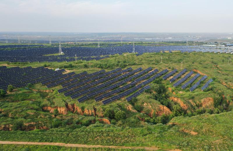 图为天骄绿能50万千瓦采煤沉陷区生态治理光伏发电示范项目区。新华网发(李志鹏 摄)