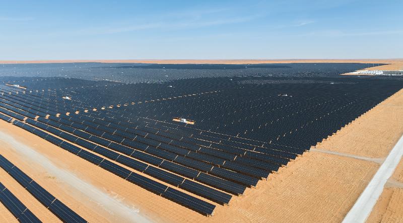 图为中国华电内蒙古腾格里“沙戈荒”新能源基地200万千瓦光伏项目。新华网发(康瑜 摄)