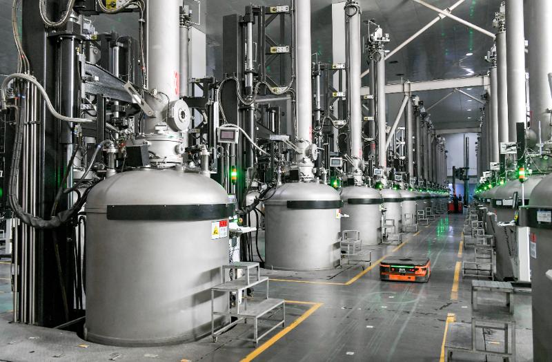 图为内蒙古包头一家硅材料生产企业的单晶硅棒生产车间。新华网发(贝赫 摄)