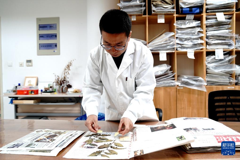 11月19日,上海辰山植物标本馆馆长葛斌杰在辰山中心标本馆整理新采集种子的凭证标本。