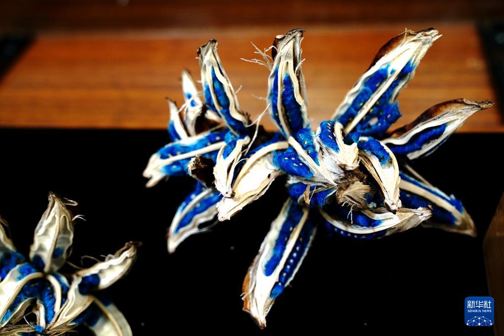 11月19日在辰山中心植物种子展柜中拍摄的旅人蕉蓝色种子。