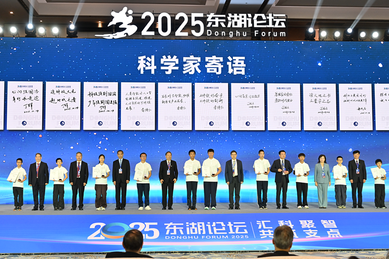 本届论坛特别关注青年科技人才培养。李德仁、丁烈云、丁荣军、谢先启、孙和平、李培武、杨春和、金梅林8位院士为2025年度全国青少年创·造实践活动获奖代表颁奖并手写寄语,传递创新火种和科学精神。