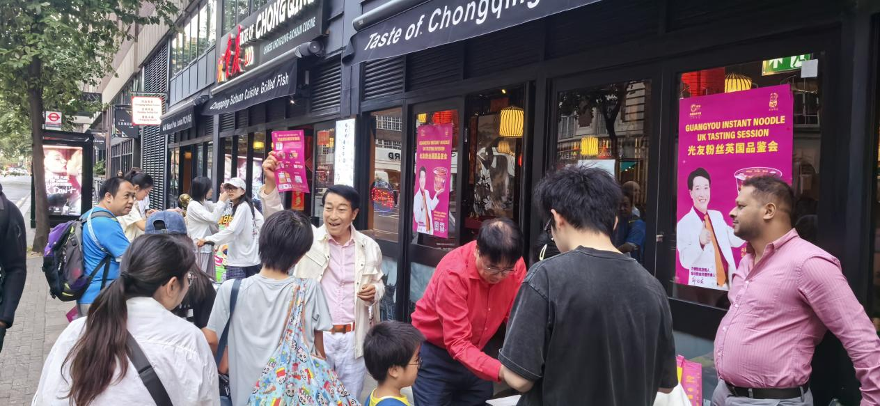 2025年8月16日及19日,光友粉丝团在伦敦重庆味道组织光友粉丝英国品鉴会,餐厅和街头香气四溢,光友粉丝英国品鉴会在此火热开启,光友低 Gi酸辣粉、光友酸辣粉网红杯、光友mini 杯、光友绵阳米粉、光友9999重庆小面、光友红油面皮等多款产品集体亮相,刚一摆上展台就吸引全场目光,吸引伦敦街头来自英国、德国、法国等世界各国成百上千的消费者上前品尝。