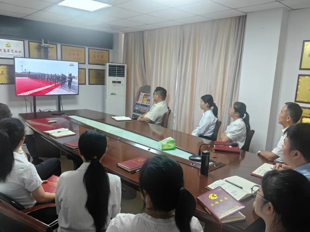 抚州高新区投资促进局集中收听收看大会实况直播。大家神情专注,共同感受伟大抗战精神,汲取奋进力量。