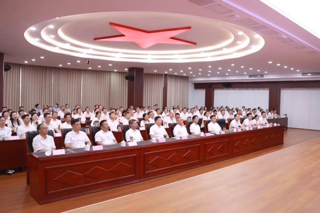 在新余高新区管委会五楼会议室,新余市副市长、新余高新区党工委书记舒永忠,新余高新区党工委副书记、管委会主任胡军及在家领导班子成员和区直各部门、各事业单位、高新集团副科级以上干部140余人齐聚屏幕前收听收看,共同见证这一属于全体中国人的荣耀时刻。