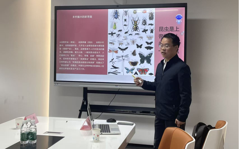 路演现场,两位高校专家先后带来精彩项目分享。林竹科技创新产业研究院专职研究员、乐山师范学院胡烨博士围绕“金山银花川产道地药材——花叶兼用良种川银花‘沐银9号’淡红忍冬”项目,详细介绍了该省级林木良种的研发过程、技术优势及产业价值,解答企业关于品种推广、合作模式的疑问;乐山师范学院生命科学学院实验师童超以“昆虫创意产业助力乡村振兴”为主题,分享了爬沙虫、萤火虫等资源昆虫的养殖技术、开发应用及观光园建设经验,与企业深入探讨了产业融合可行性。