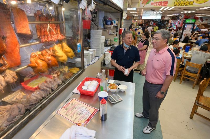 10月1日,香港约3600家食肆推出折扣。图为湾仔鹅颈街市一家推出外卖优惠的烧味店。新华社发(香港特区政府供图)