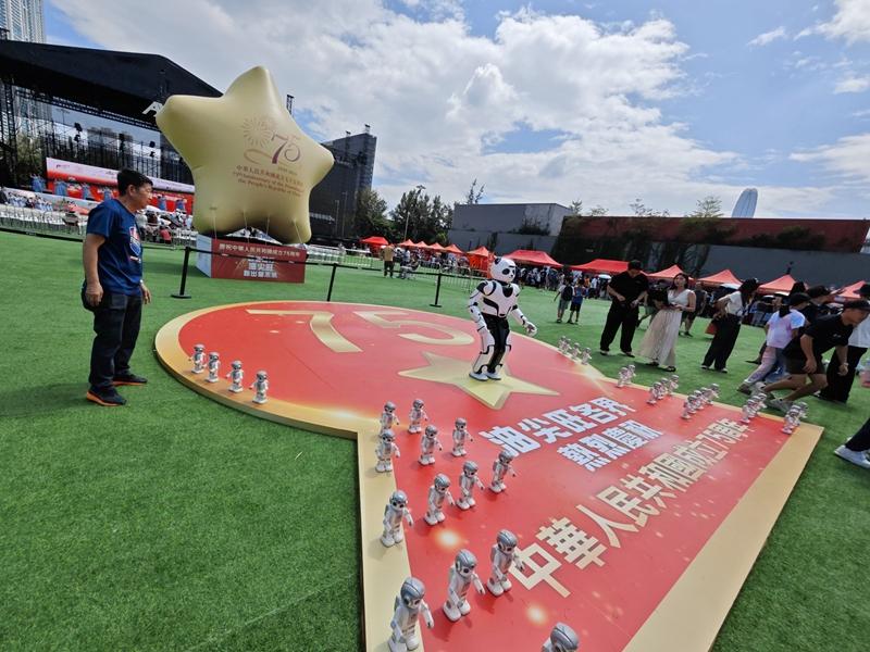 10月1日,香港油尖旺区各界在西九文化区组织了一场文化和科技交织的庆典。图为庆典上展示的机器人。新华社记者 褚萌萌 摄