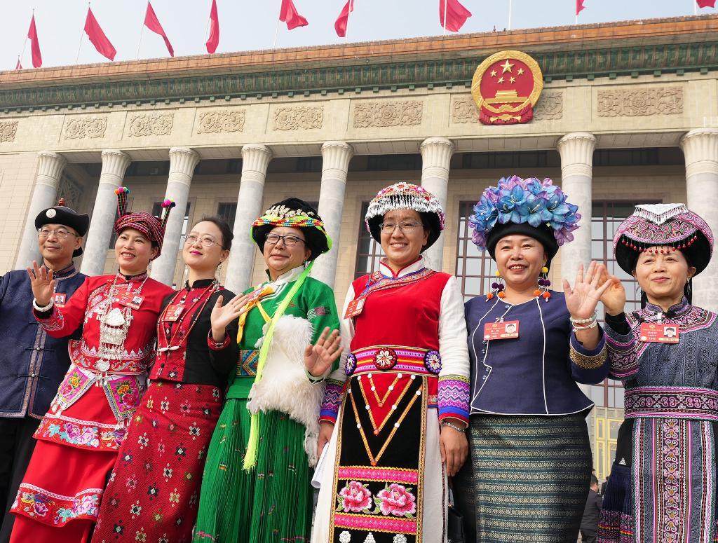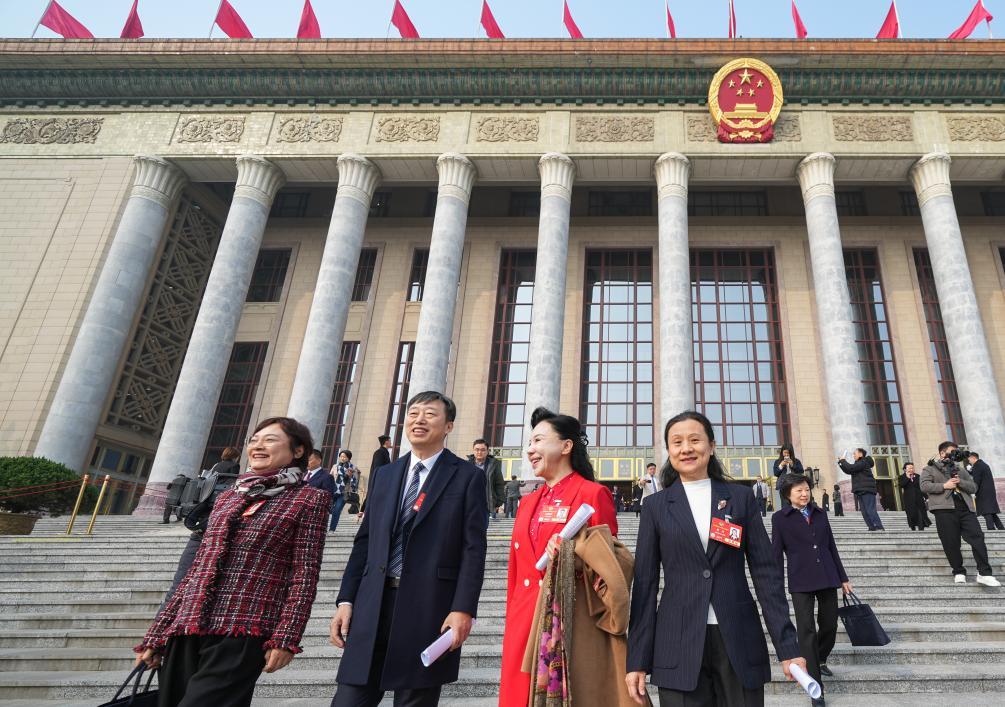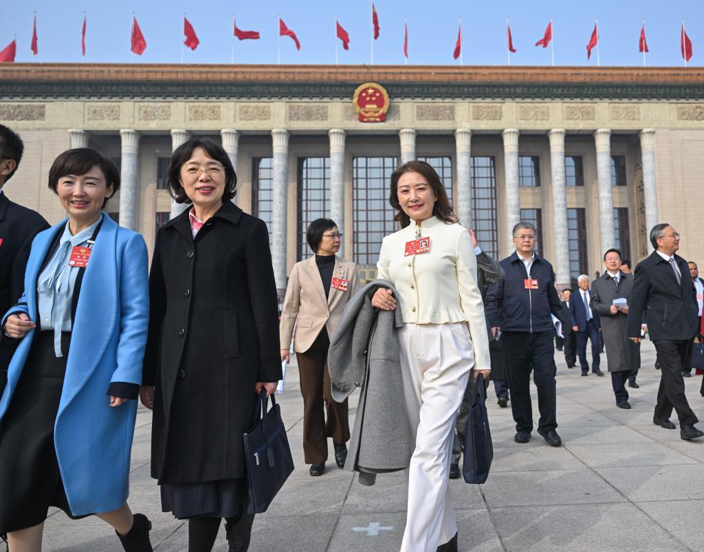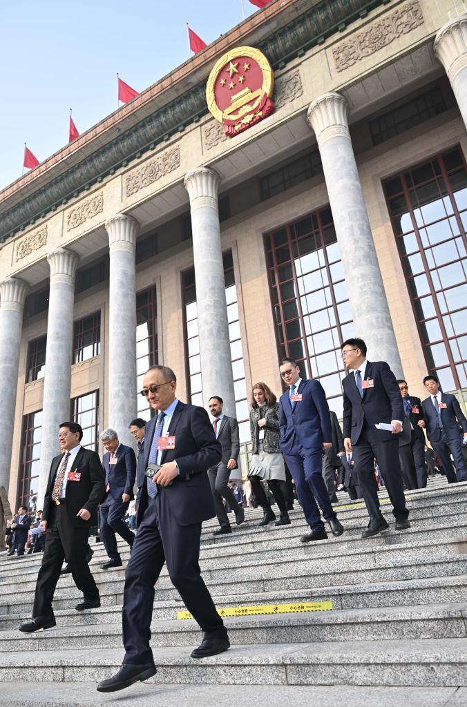 3月10日,全国政协十四届三次会议在北京人民大会堂举行闭幕会。这是闭幕会后,委员们走出人民大会堂。