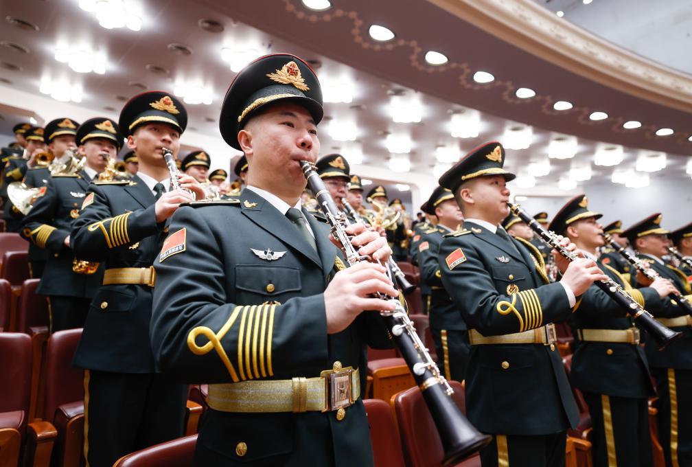 3月10日,全国政协十四届三次会议在北京人民大会堂举行闭幕会。这是军乐团在演奏。