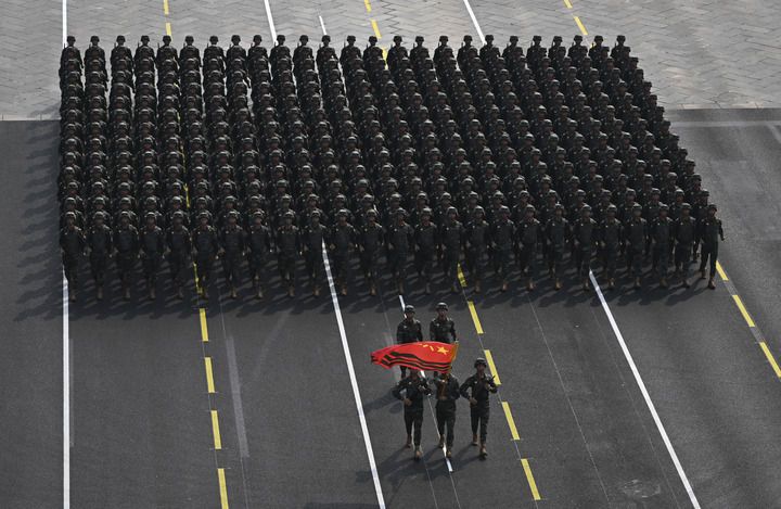 ↑9月3日,纪念中国人民抗日战争暨世界反法西斯战争胜利80周年大会在北京隆重举行。这是信息支援部队方队通过天安门广场。新华社记者 陈益宸 摄