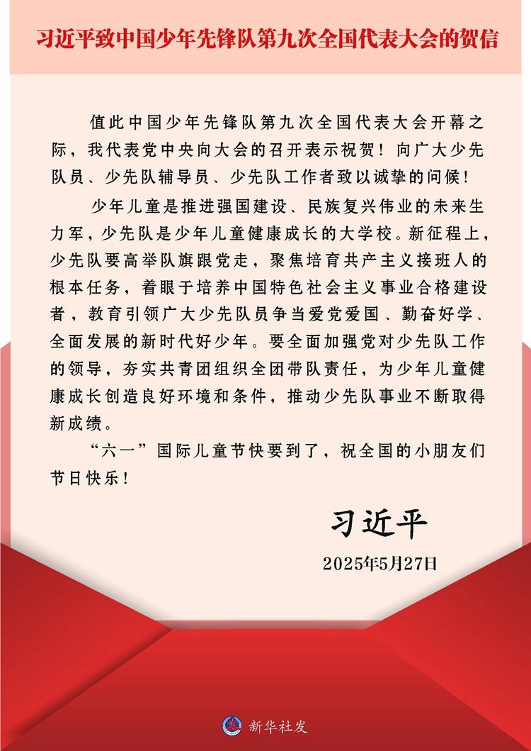 习近平致信祝贺中国少年先锋队第九次全国代表大会召开强调
