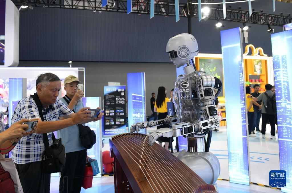 9月12日,在2025广东国际旅游产业博览会现场,智能机器人弹奏古筝。