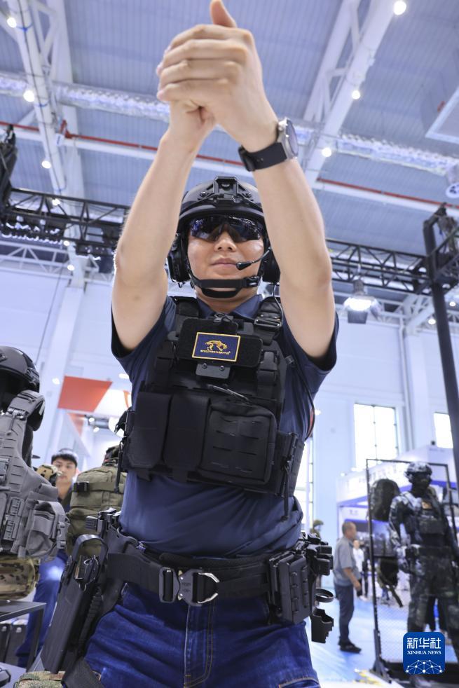 9月16日,在第二届公共安全科技装备展现场,工作人员展示新型模块化作战背心。