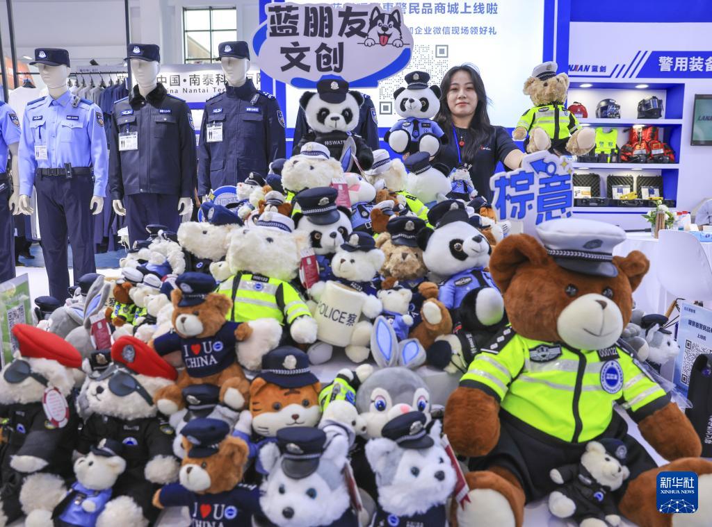 9月16日,在第二届公共安全科技装备展现场,工作人员展示文创产品。