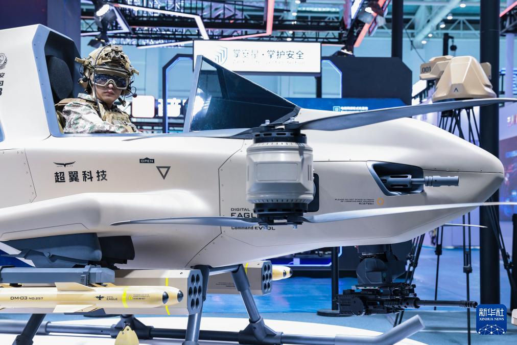 9月16日,在第二届公共安全科技装备展现场,工作人员演示武装电动垂直起降飞行器eVTOL。