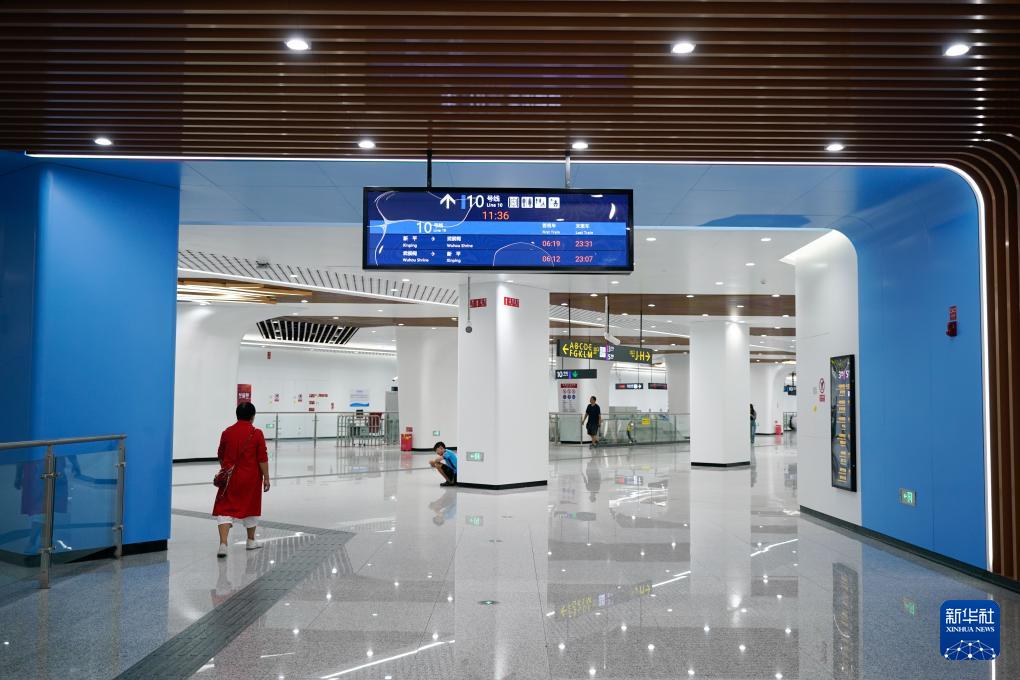 9月17日拍摄的成都地铁10号线三期高升桥站站台,上方悬挂的电子屏可实时显示车站导向信息。