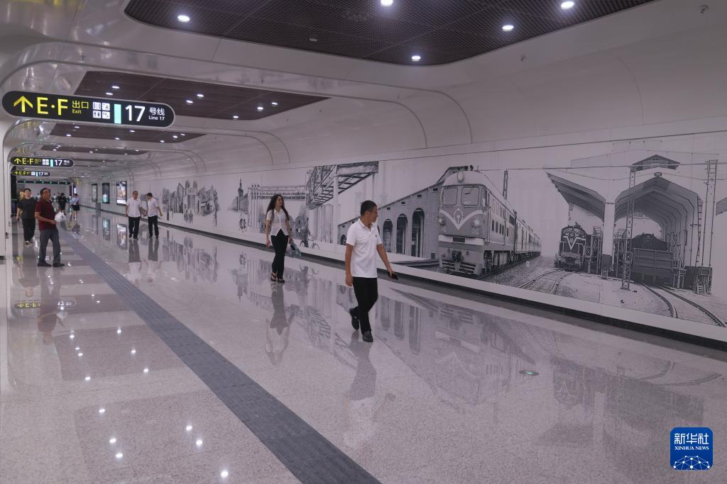 9月17日,在成都地铁17号线二期二仙桥站,市民观看站台内文化墙。