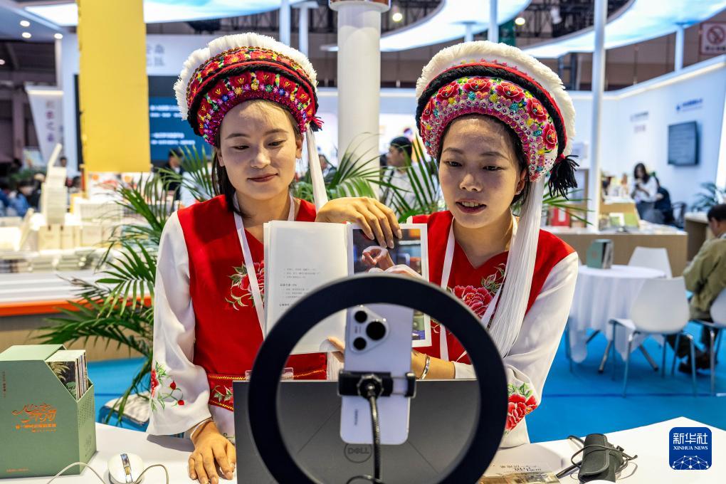 9月17日,参展商在创意云南文化产业博览会上直播推介云南特色书籍。