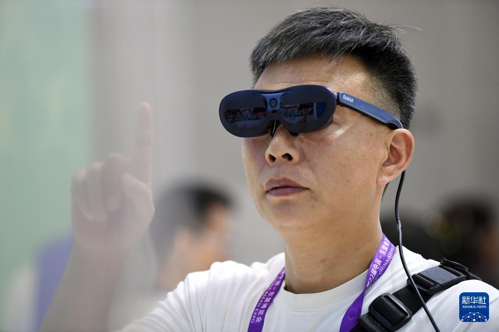 9月18日,在南宁国际会展中心,参观者体验一款AR眼镜。