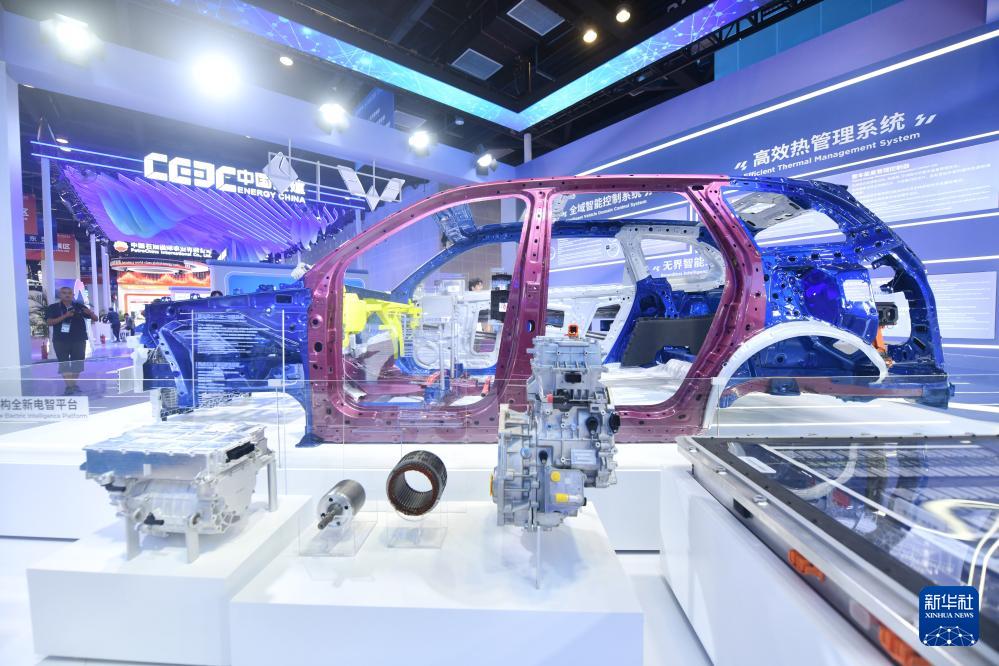 在南宁国际会展中心拍摄的柳州产电动新能源汽车展台(9月20日摄)。