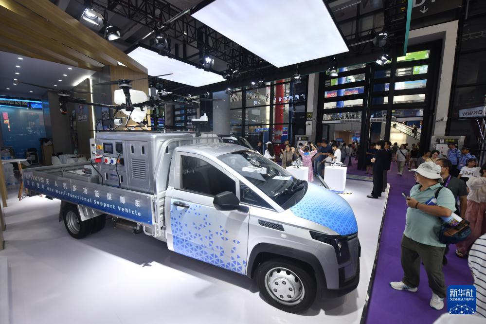 在南宁国际会展中心,观众参观一款柳州产的无人机多功能保障车(9月20日摄)。