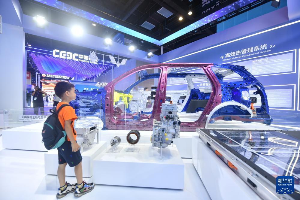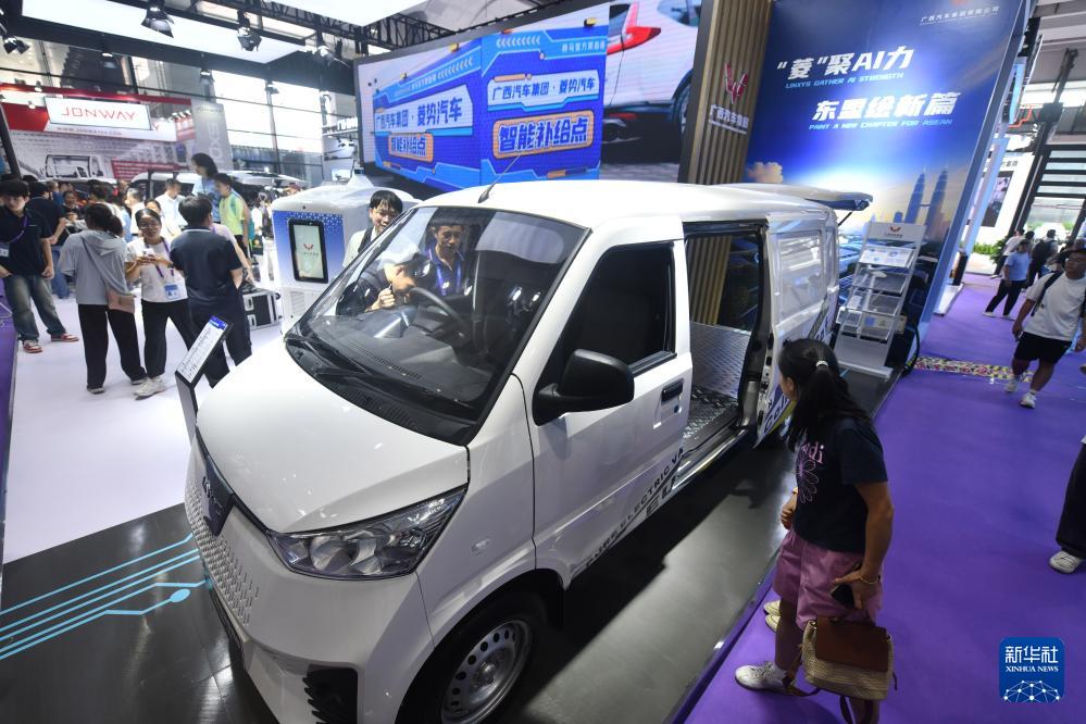 在南宁国际会展中心,观众参观一款柳州产的纯电动商用车(9月20日摄)。