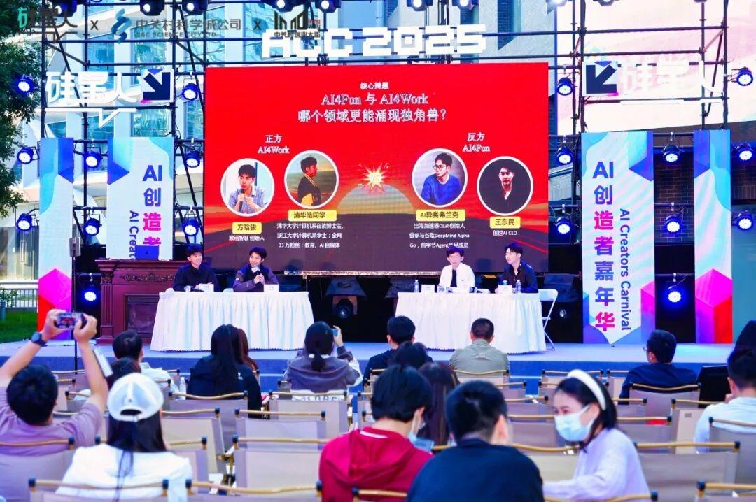 值得一提的是,作为本次嘉年华最具活力的核心场域,主舞台以围炉对谈、落日辩论和夜场开放麦等创新形式,呈现2025年AI创业趋势、人形机器人未来、3D游戏技术等一系列前沿议题。