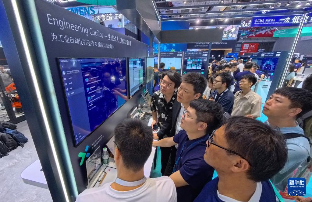 9月23日,参观者在人工智能工程助理展示屏前驻足观看。