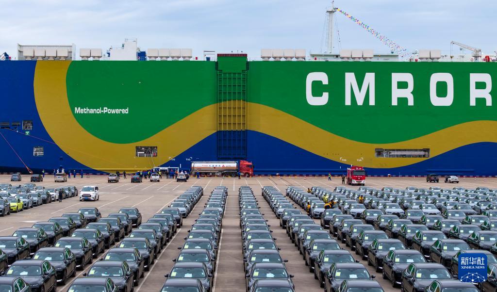据了解,“港荣”轮是全球首艘采用甲醇双燃料动力系统的大型汽车滚装船。本次加注所用甲醇产自内蒙古,以废旧轮胎和生物质为原料,本次作业可减排二氧化碳460吨。