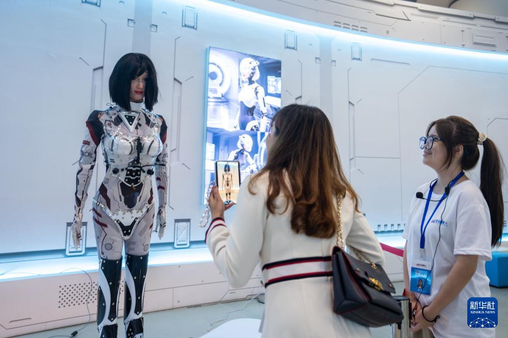 9月24日,在株洲国际会展中心,观众(右二)在了解一台人形机器人。
