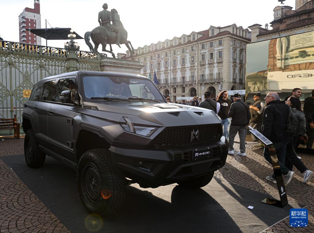 9月26日,在意大利都灵,人们在2025年都灵车展上参观一款展出的东风猛士汽车。