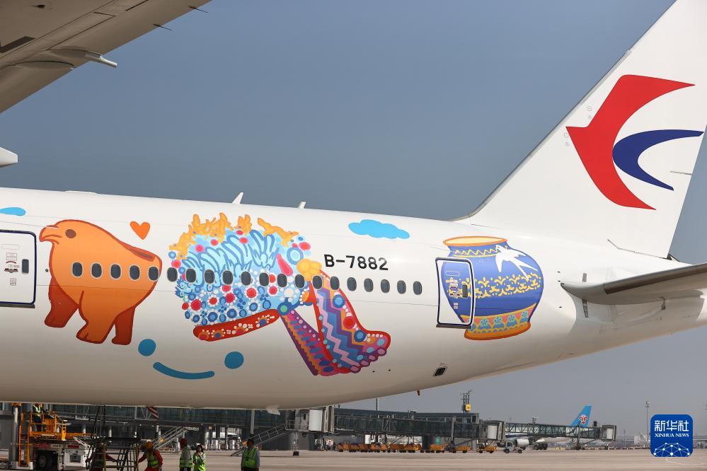 中国国家博物馆与中国东方航空联合推出的“国博号”主题彩绘飞机将于9月29日在北京大兴机场首航,飞往上海浦东,并以此为起点,逐步投入国内、欧美澳等重点航线及“一带一路”国际航线,架起文化传播的“空中桥梁”。
