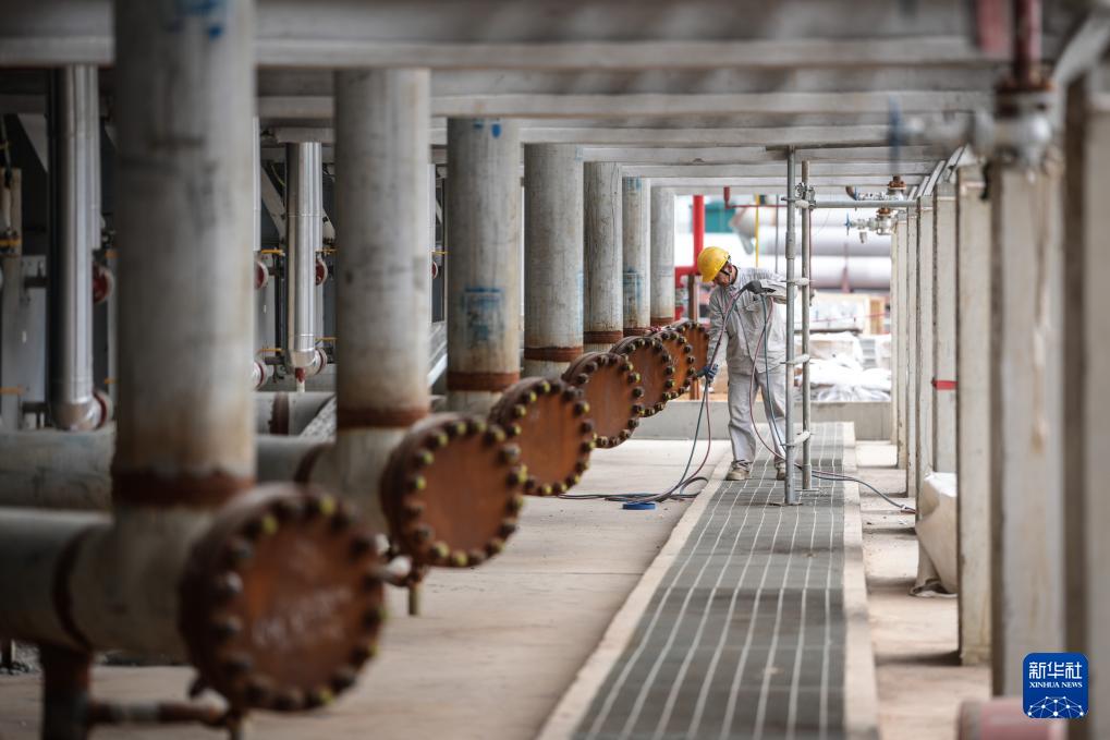 10月10日,工作人员在华锦阿美精细化工及原料工程项目现场施工。