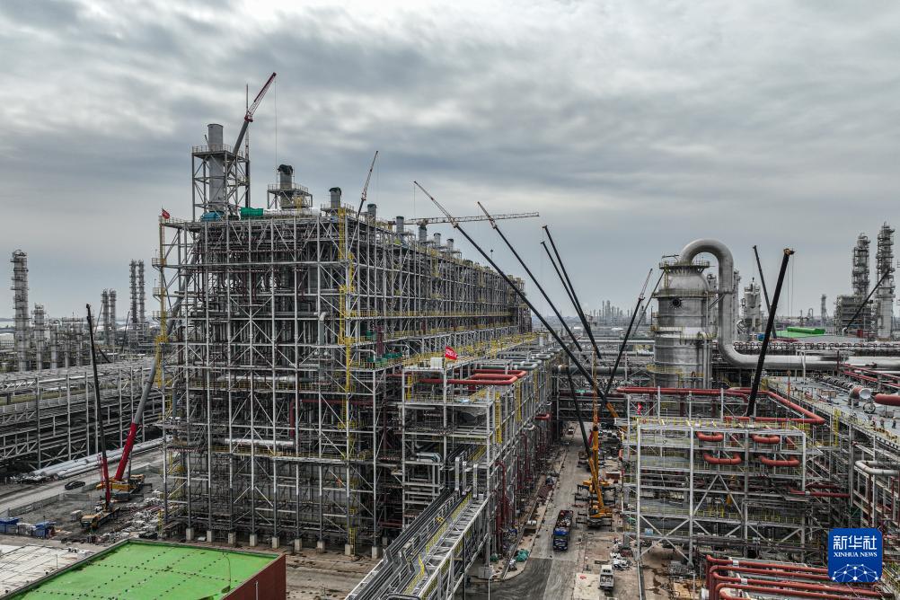 10月10日拍摄的华锦阿美精细化工及原料工程项目施工现场(无人机照片)。