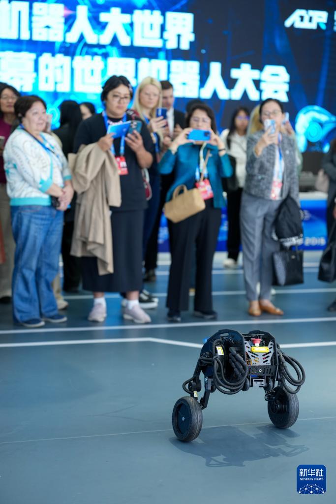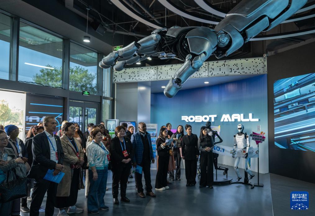 10月14日,全球妇女峰会参会嘉宾在北京经开区机器人大世界参观。