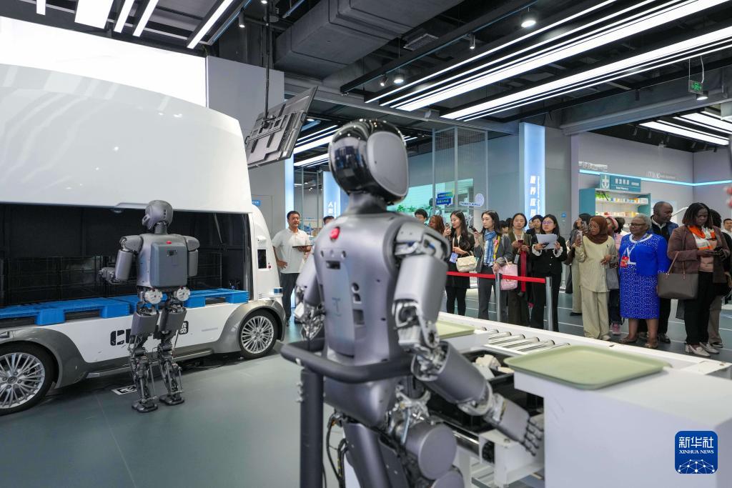 10月14日,嘉宾在北京经开区机器人大世界观看机器人演示。