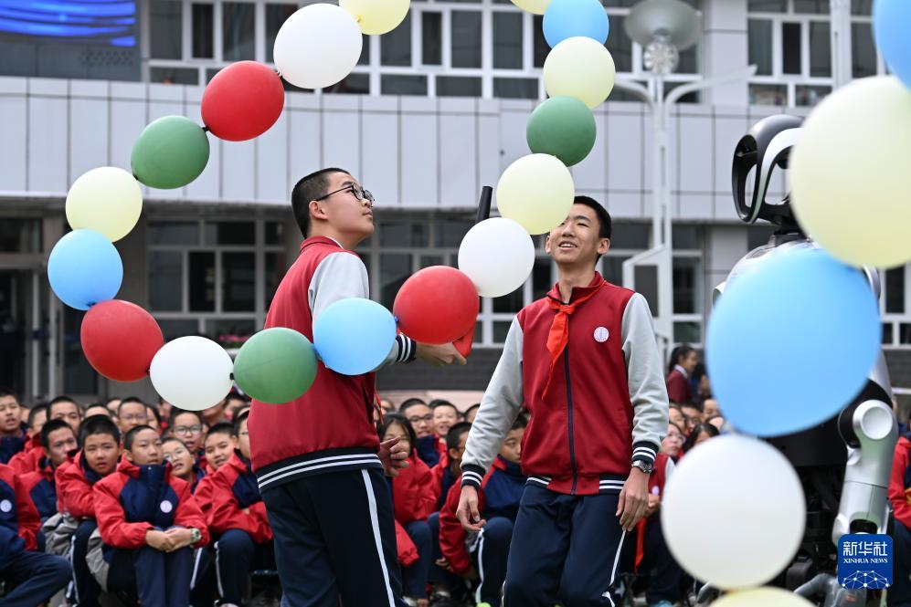 10月13日,新疆生产建设兵团第一中学学生在科技节开幕式上操控智能机器狗。