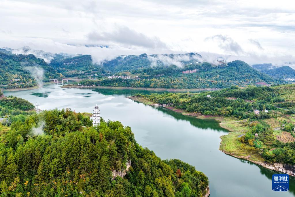 这是10月15日拍摄的石柱县桥头镇景色(无人机照片)。