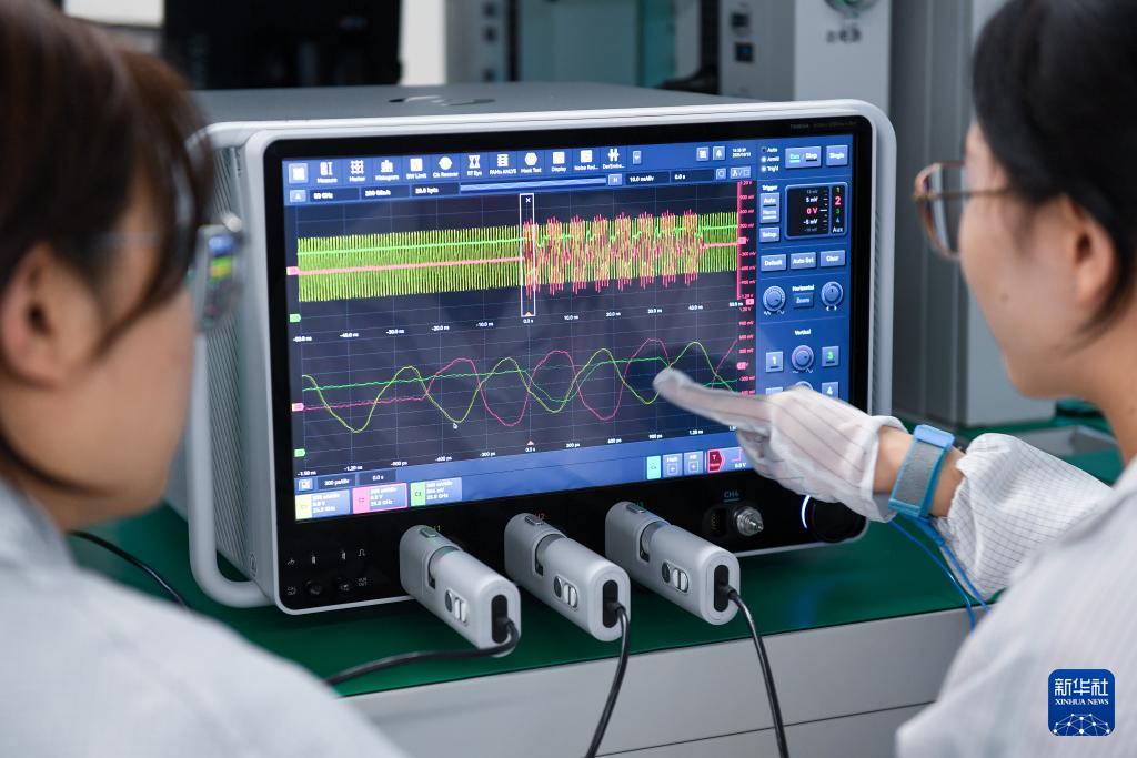 10月13日,在深圳市万里眼技术有限公司,实验室人员分析高速信号时序关系。