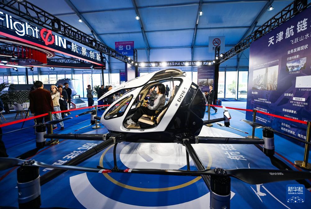 10月16日,观众在天津直博会低空经济馆内体验一款垂直起降(eVTOL)航空器。