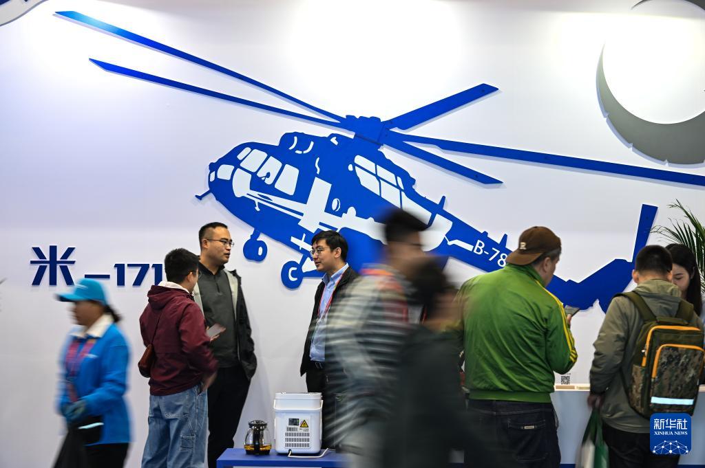 10月16日,观众在天津直博会直升机馆内参观洽谈。